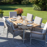 Norvik hagemøbelsett er et stilig og moderne hagesett med et bord og 6 stoler. Settet er laget av lys aluminium og teak. De lyse fargene gir et lett og elegant utseende.