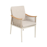 Stolene er pakket inn i lett tau som komplementerer fargene og gir stolene karakter. Putene er inkludert og er i et fint, lett stoff som matcher de andre delene.