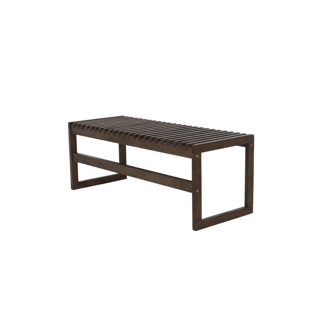 Elv bænken er laget i massiv eik og kjennetegnes av sitt enkle og rene design. De rette linjene og det naturlige treet gir benken et rolig, nordisk uttrykk som passer vakkert inn i mange typer innredning, mens det minimalistiske formspråket gjør benken enkel å kombinere med andre møbler.