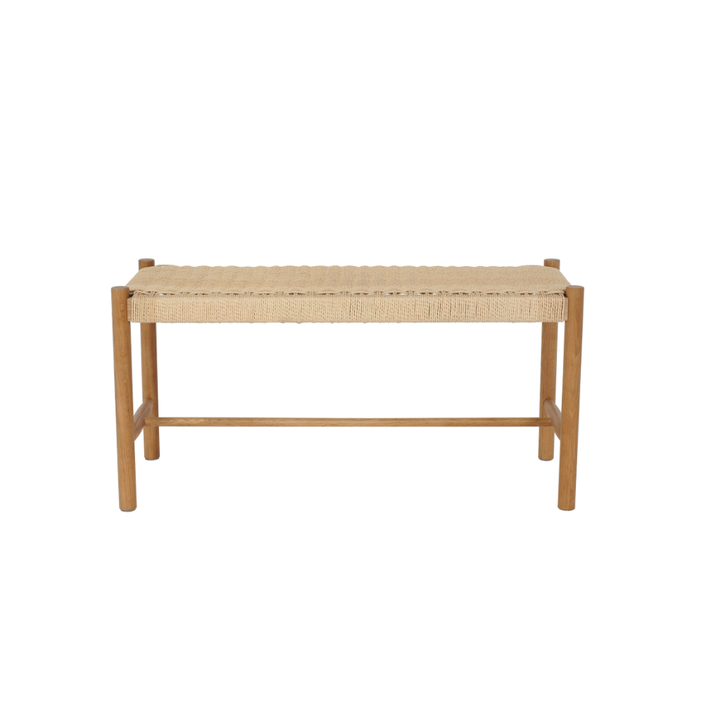 Vidar benken er laget i massiv eik og har et klassisk sete i naturflett, som tilfører møbelet varme og letthet. Det enkle designet kombinerer klassiske detaljer med nordisk minimalisme og gir benken et tidløst og innbydende uttrykk.