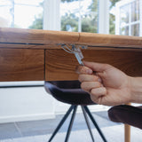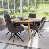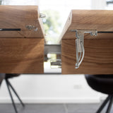 Det unike runde spisebord er laget av massivt eiketre. Med dette vakre design kan du indrette spisestuen din med fokus på flott treverk og funksjonalitet, ettersom du kan justerer bordets lengde med de to tilleggsplater.