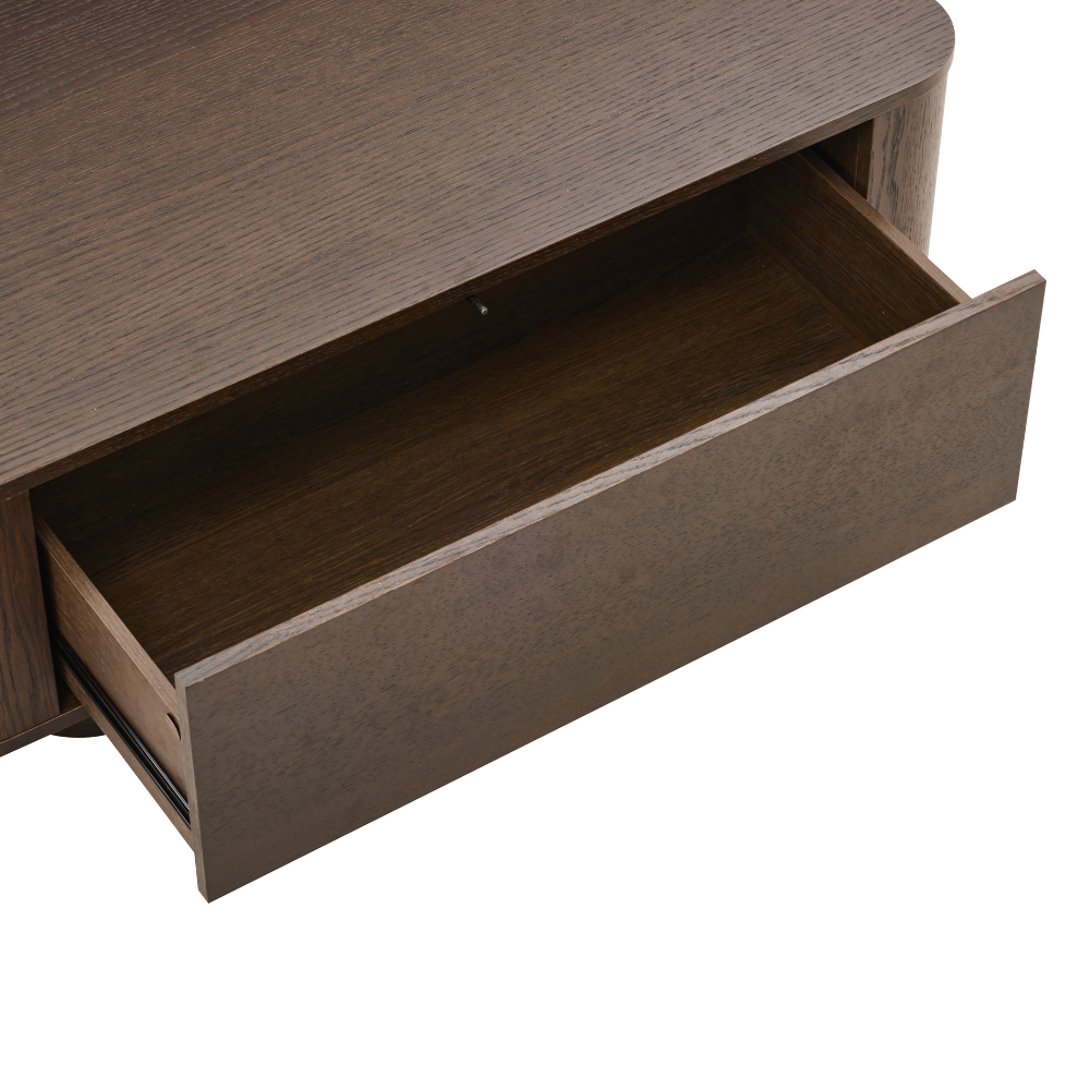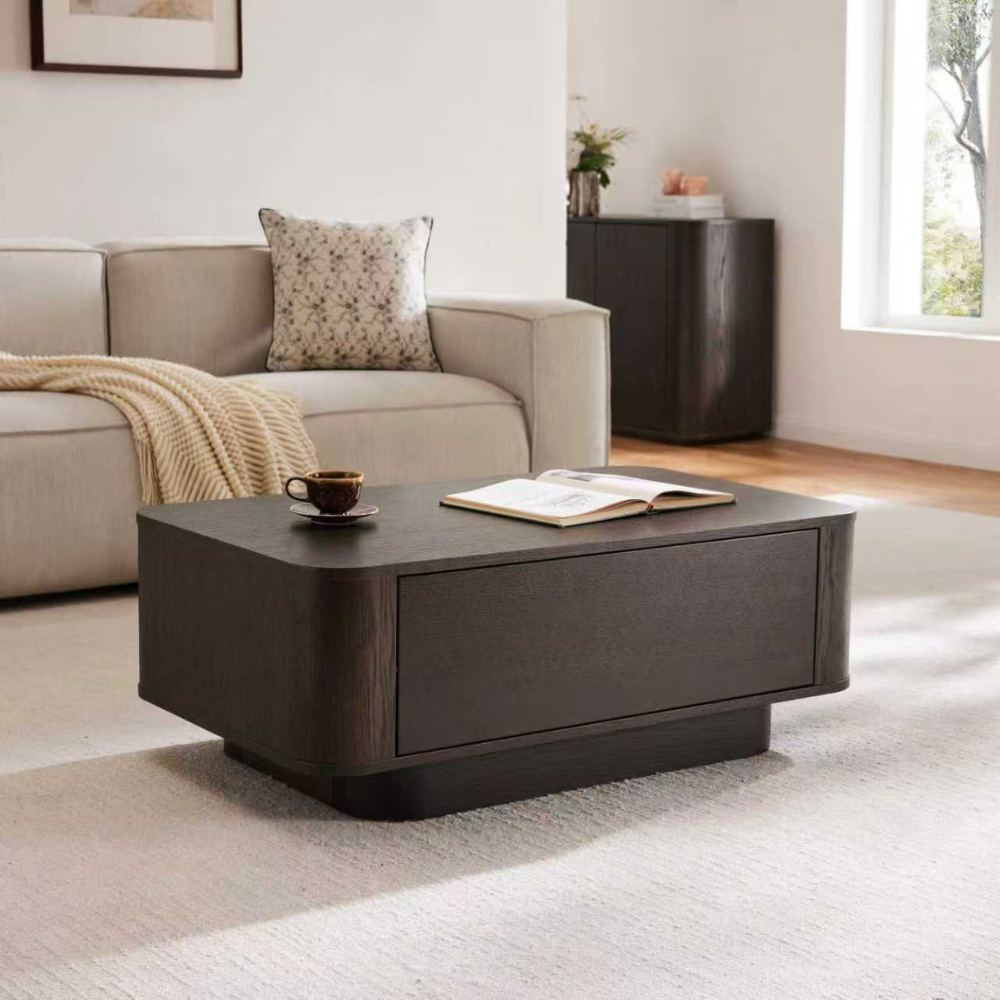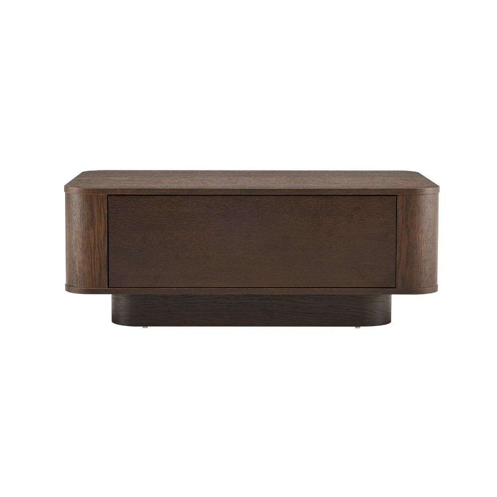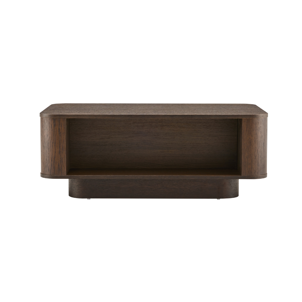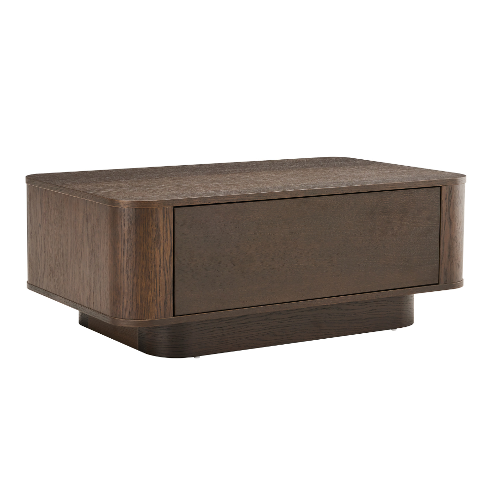 Vårt Rina sofabord er fylt med karakter - med et lett svevende uttrykk og avrundede former vil det passe inn i de fleste stuer. Bordet er laget i eikefinér, og har et klassisk design. Overflaten er lett lakkert, men du kan fortsatt kjenne strukturen i treet.