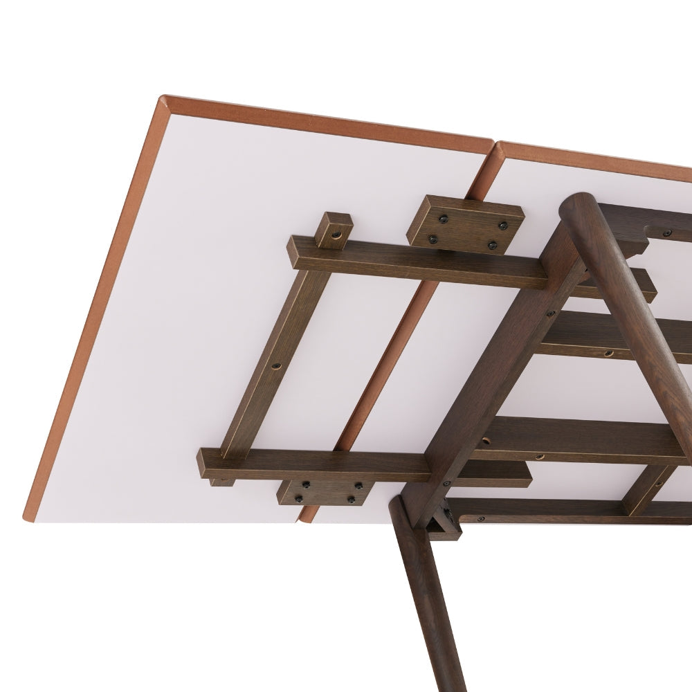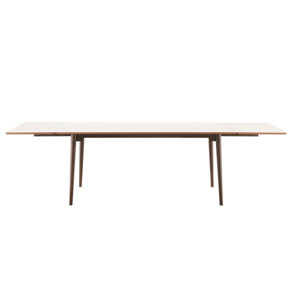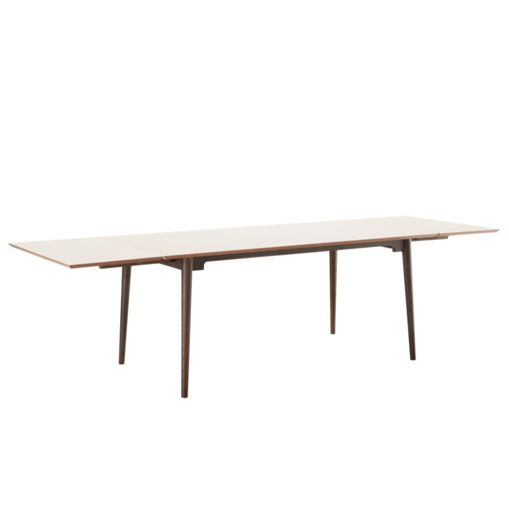 Flott og elegant spisebord med smoked eikeben og en taupe HPL bordplate. Spisebordet gir et eksklusivt uttrykk og fargene skaper en kul kontrast. Bordet kan forlenges med to tilleggsplater, så det er plass til opptil 4 stoler per langside.