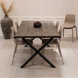 Skap et elegant og tidløst utseende i spisestuen din med denne vakre spisegruppe, som kombinerer naturlig varme med moderne funksjonalitet.