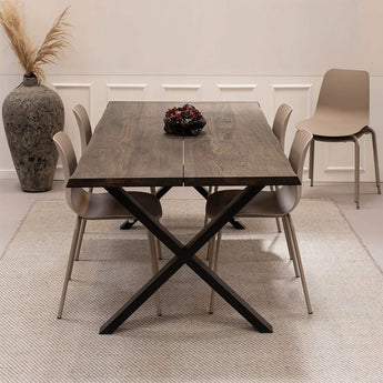 Spisebordsett - Venus plankebord 200 cm Smoked Eik + 4 stk. Karlo spisesstol i beige