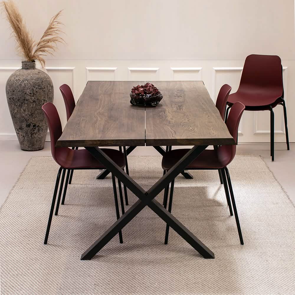 Spisebordsett - Venus plankebord 200 cm Smoked Eik + 4 stk. Karlo spisesstol i bordeaux