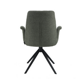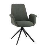 Arvik spisebordsstol er en stilig spisestol med armlener og svingfunksjon. Stolen er i grønn stoff som er slitesterk og har et fint, enkelt utseende.