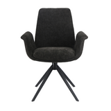Arvik spisebordsstol er en stilig spisestol med armlener og svingfunksjon. Stolen er i sort tettvevd stoff som er slitesterk og har et fint, enkelt utseende.