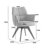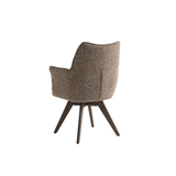De mørke, røkte eikebena er laget av heltre og skaper en vakker og naturlig forbindelse med det polstrede setet. De slanke bena gir stolen et lett uttrykk, som en kontrast til det romslige setet. Stolen har en svingfunksjon, som gjør det enkelt å komme seg inn og ut av bordet uten å måtte flytte stolen rundt.