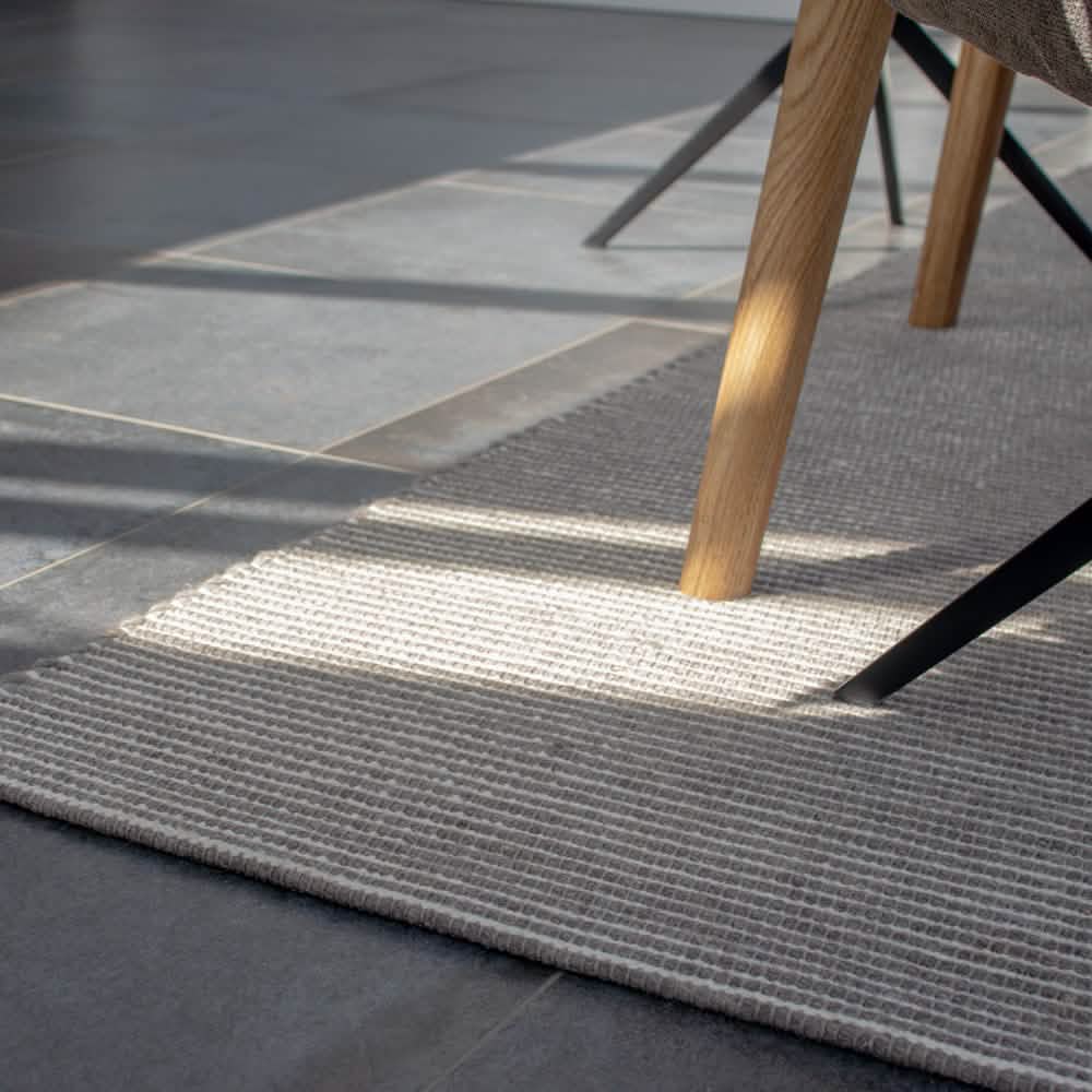 Gulvteppet er laget av en blanding på 80% ull og 20% bomull.