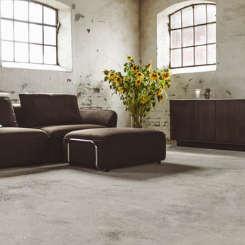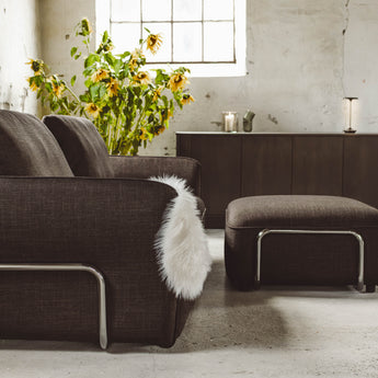 Lino kombinerer et industrielt utseende med et eksklusivt design, hvor kontrasten mellom det myke trekk og de forkrommede, geometriske brakettene på sidene og baksiden skaper en spennende visuell effekt. Lino sofaen er en flott loungesofa, som skaper en koselig og innbydende atmosfære. Den løse puffen gir fleksibilitet, slik at du kan leke med sofaens uttrykk. Når du kjøper Lino sofaen følger med 2 x ryggputer.