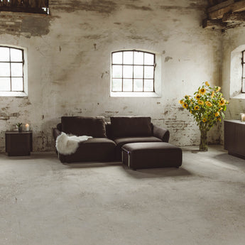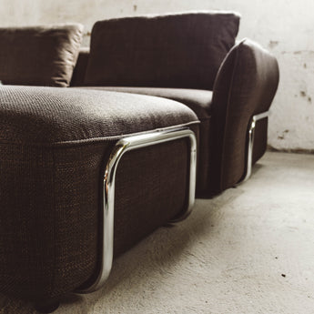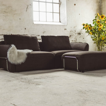Lino Chrome Sofa inkl. puff - Brun stoff