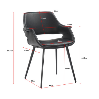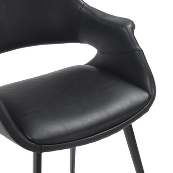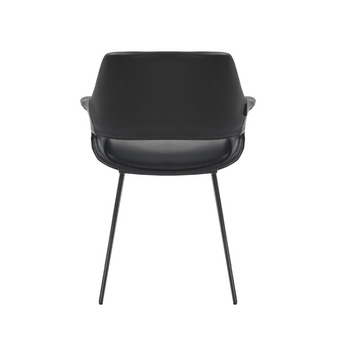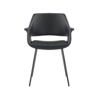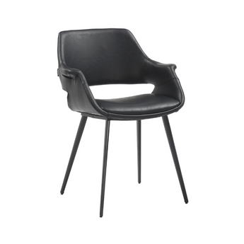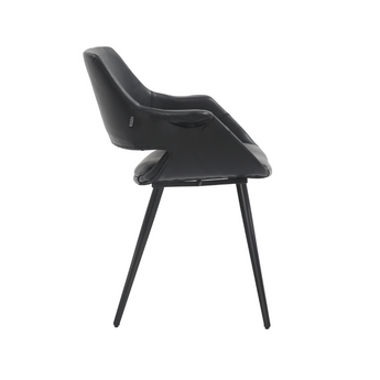 Vår Luis spisebordsstol i høy kvalitet og flott design. Stolen er laget av sort PU med fokus på sittekomfort. Stolens formede rygg og armlener gir ekstra komfort under lange måltider eller koselige stunder ved bordet. De slanke, svarte metallbena gir et moderne preg.