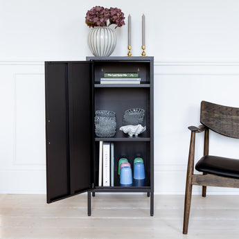 Et flott eksklusiv Luna metallskab med 1 metalldør og 2 faste metalhyller inni.