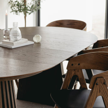 Runde spisebord kan noe helt spesielt i boligen. Det runde spisebordet med den mørke varme smoked farge innbyr til samvær, med plass til hele familien. Måne Lamel Spisebord med tilleggsplater kan nemlig bli helt opptil 210 cm. Monter enkelt én eller to tilleggsplater etter behov og få plass til alt.