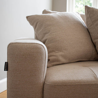 Sofaen er sydd med paneler på setene og putene er fylt med skum, så komforten og designet er på topp.