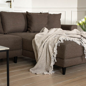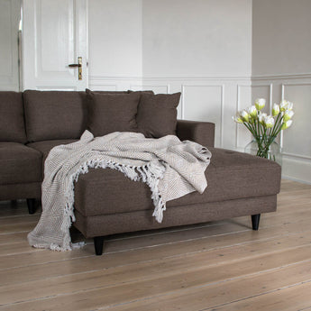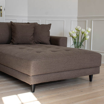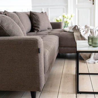 Det at du kan velge om sjeselongen skal stå på høyre eller venstre side, gjør sofaen veldig fleksibel.