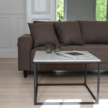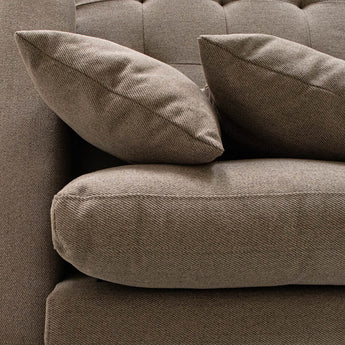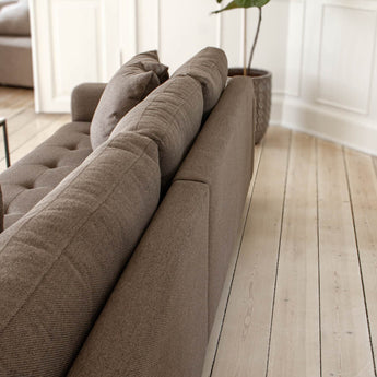 Sofaen er sydd med paneler på setene og putene er fylt med skum, så komforten og designet er på topp.