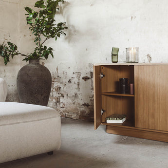 Rina-skjenken er perfekt i stuen, gangen eller spisestuen – eller hvor enn du vil plassere den. Skjenken tilfører karakter og ro til rommet på en raffinert måte.