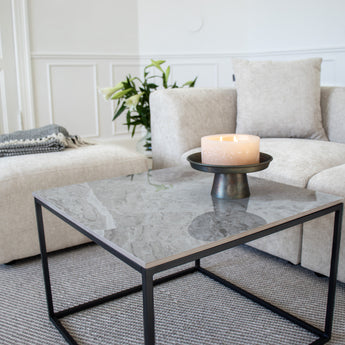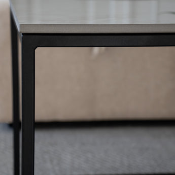 Pent og enkelt sidebord med en lekker brun keramisk bordplate. Sidebordene er smarte da de kan brukes på flere forskjellige måter. Bruk dem som sidebord, med lampe eller plante for å skape stemning, eller bruk to ved siden av hverandre for et mer fleksibelt salongbord.