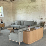 Vår Tomson-sofa er elegant og perfekt for de som elsker nordisk og skandinavisk design. Sofaen er trukket i et mykt og slitesterkt stoff, som lar deg slappe av og nyte koselige stunder med familie eller venner.